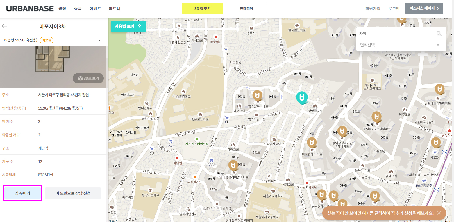 - '3D집 찾기' 클릭합니다.
