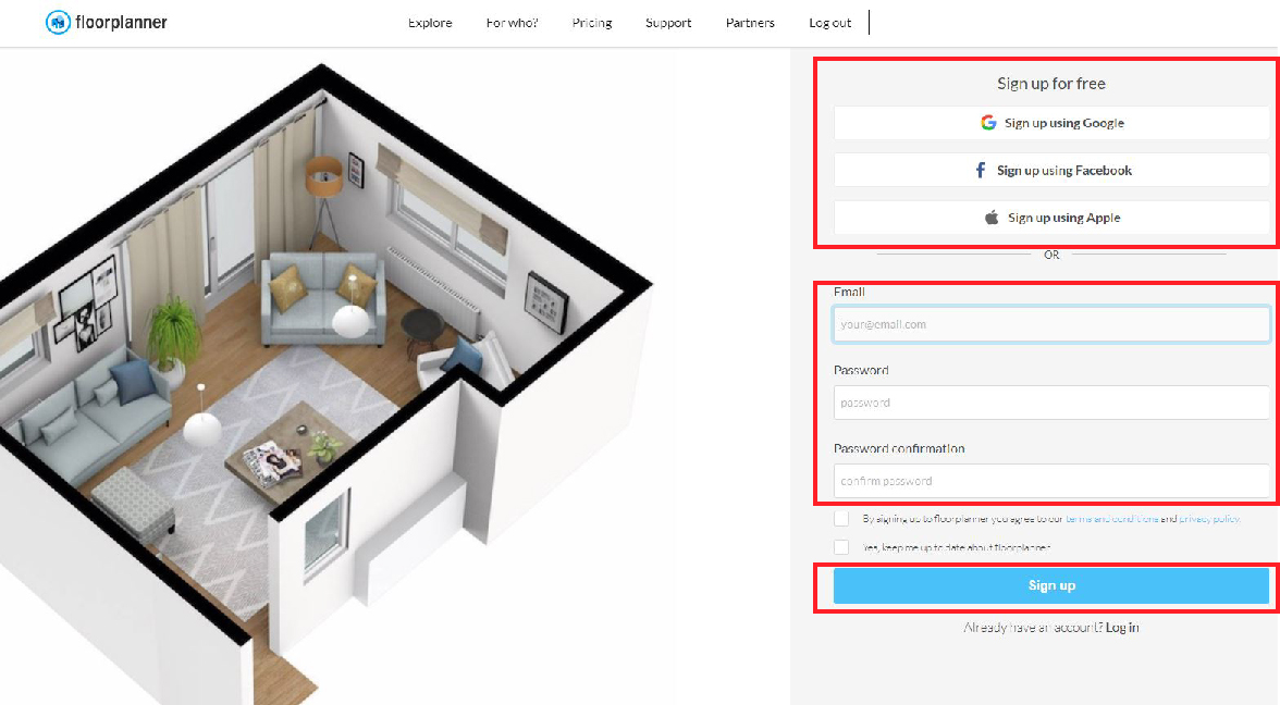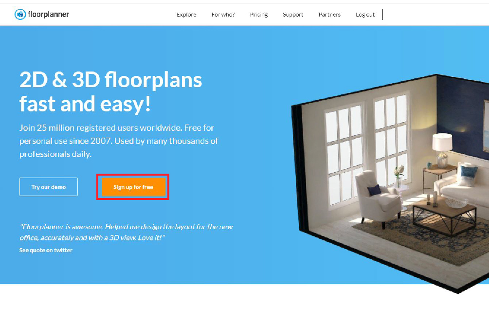 - 플로어플래너 사이트로 접속해 주세요.( https://floorplanner.com/)
