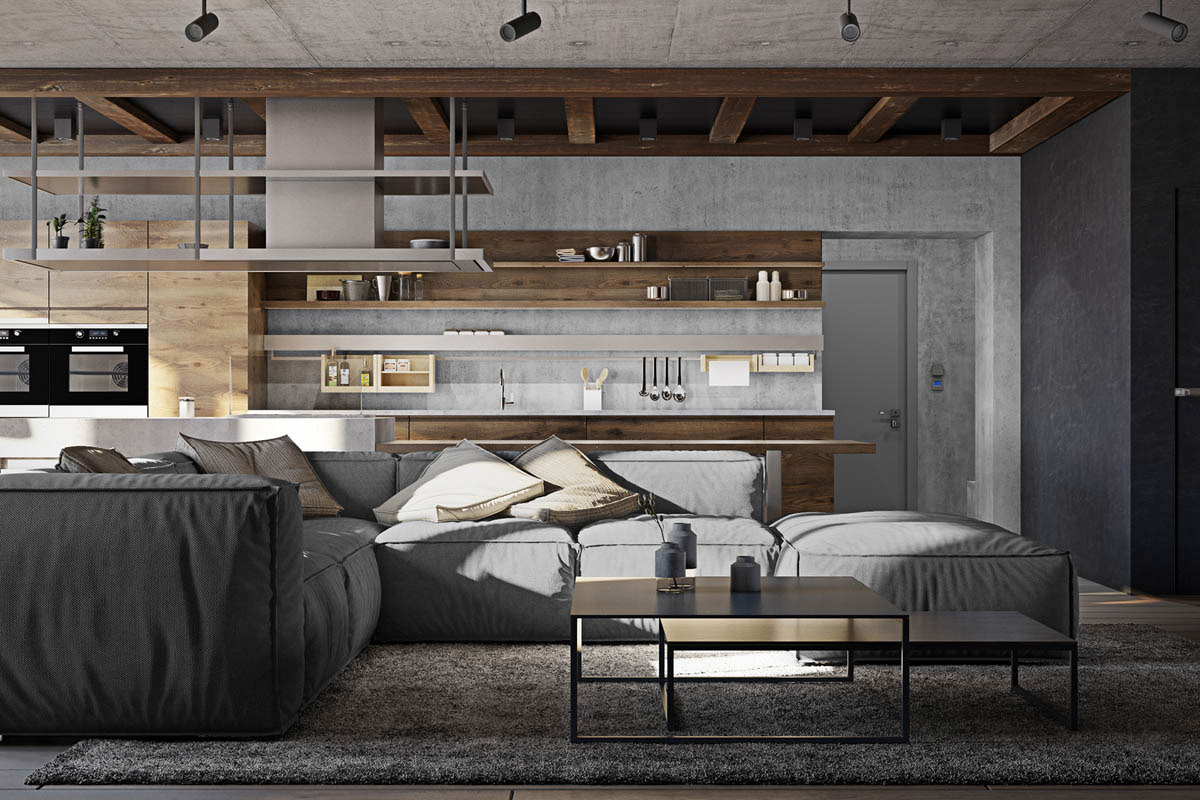 무채색의 가구들과 노출 콘크리트 벽이 더해져 공간을 더 시크하게 만듭니다.