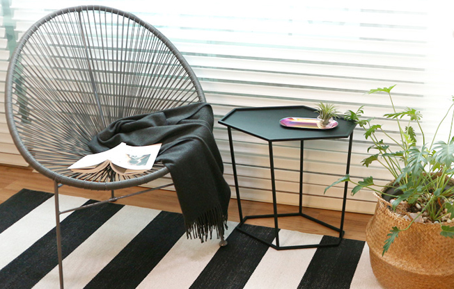 연출에 따라 모던하고 심플하게 양털 러그 등 다른 소품들과 같이 배치해
