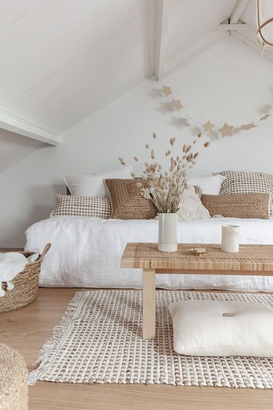 밝은 바닥에 밝은색 가구는 공간을 넓어 보이게 합니다.