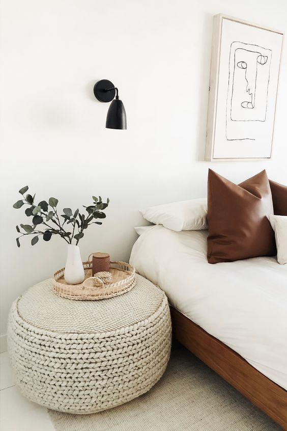 침실에 침대자리 외에 공간이 있다면 휴식을 취할 수 있는 의자나 오토만을 놓아주셔도 좋습니다.