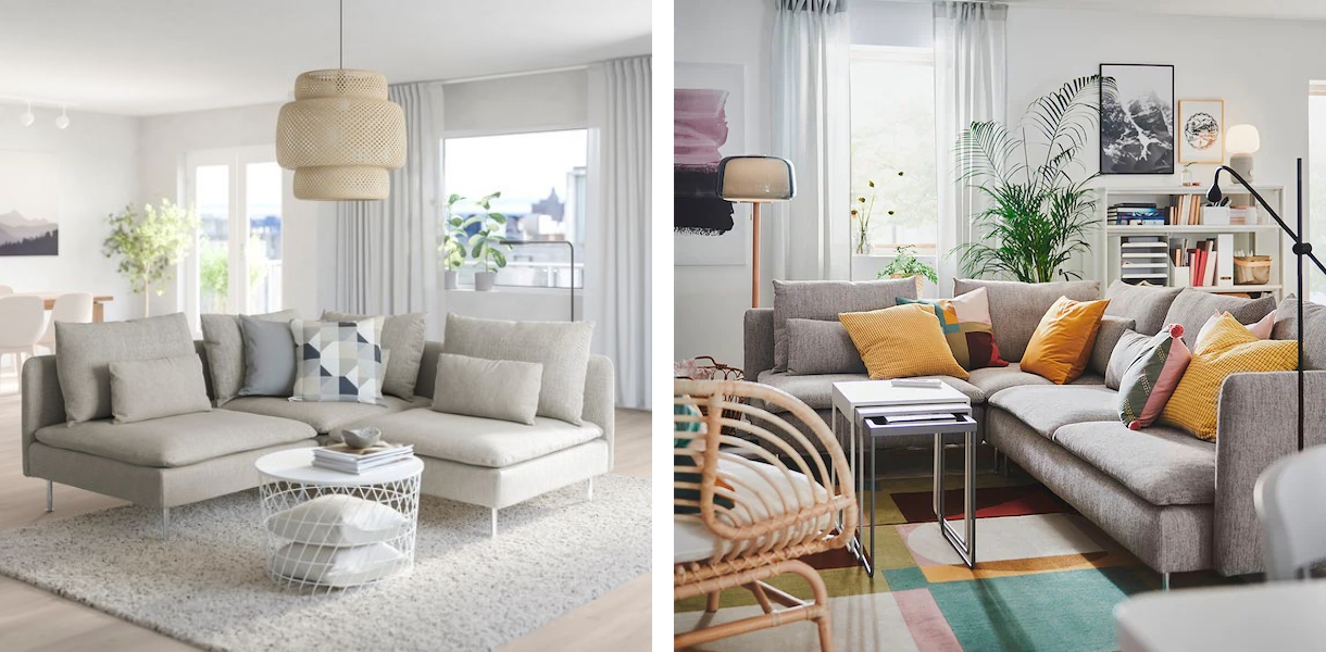그리고 패브릭 소파 하면 나중에 때가 타거나 음료를 쏟는 등 오염되기가 쉽고 닦아 내기 어려워 간혹 고르기를 망설이시는 분들이 계시는데요. 쇠데르함은 커버를 벗겨 세탁도 할 수 있고, 섹션별 커버를 따로 판매해 오래된 커버를 교체할 수 도 있는 점이 정말 마음에 들었답니다.