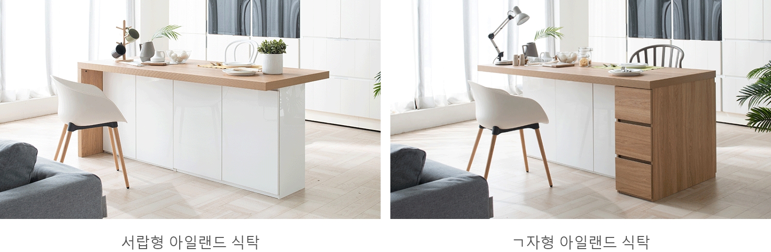 하얀주방에 너무나 잘 어울릴 것 같은 깔끔하고 심플한 디자인의 수납공간도 많은 삼익 아일랜드 식탁입니다. 길이 1400/1800 두가지형이 있구요, ㄱ자형, ㄷ자형, 서랍형 이렇게 3가지 모양이 있습니다.