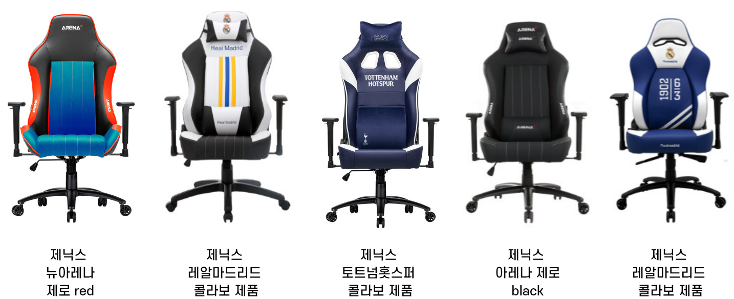 위 다섯 제품 다 내구성에 영향을 주는 제품 소재는 거의 비슷한 등급을 사용하였으니 디자인, 색상, 그리고 좌방석 크기 등을 비교해