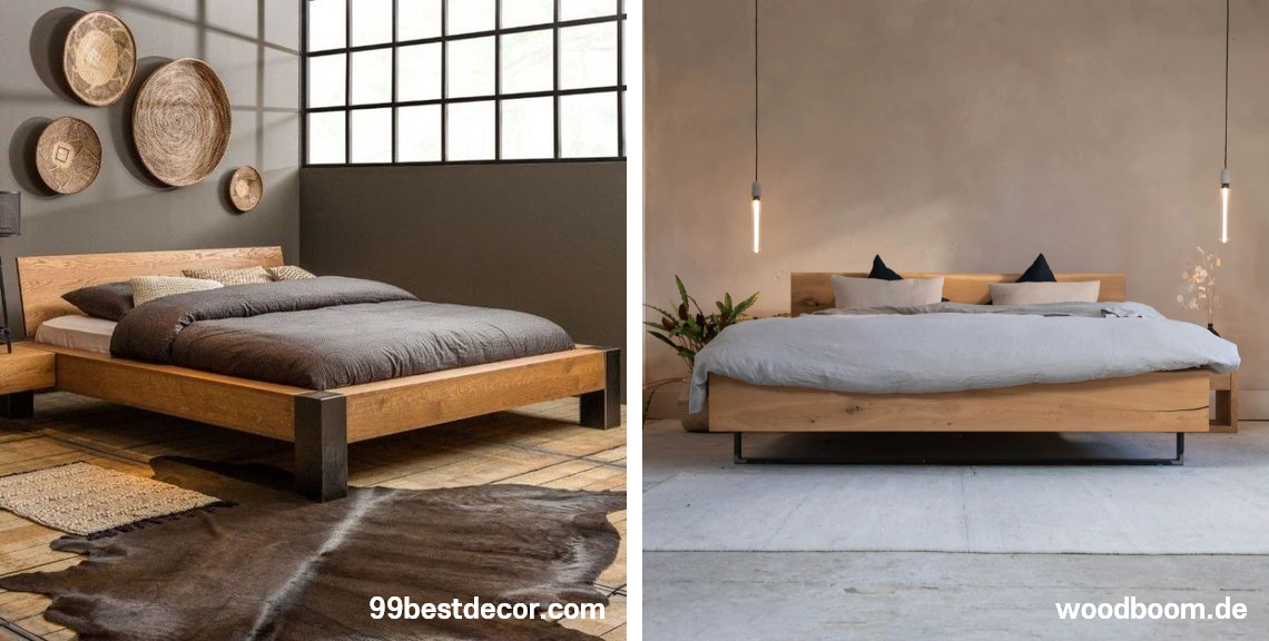 기본 프레임 침대에 헤드보드 대신 원목 보드나 템바 보드를 대어 입체감을 주면 여러 장식이 없어도 멋진 침실을 꾸밀 수 있습니다.