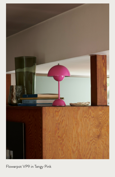 - 특징: 역시 베르너 팬톤이 디자인한 플라워팟 시리즈 중 휴대용 테이블 램프 버전입니다. 위아래로 마주 보는 두 개의 반구형 쉐이드 사이로 빛이 흘러나오며 눈부심을 줄여줍니다. 비비드한 컬러부터 차분한 뉴트럴 톤까지 다양한 컬러 옵션이 있어 공간에 활기찬 포인트를 주거나 차분한 감성을 더할 수 있어요. 3단계 밝기 조절 기능도 탑재되어 편리합니다.